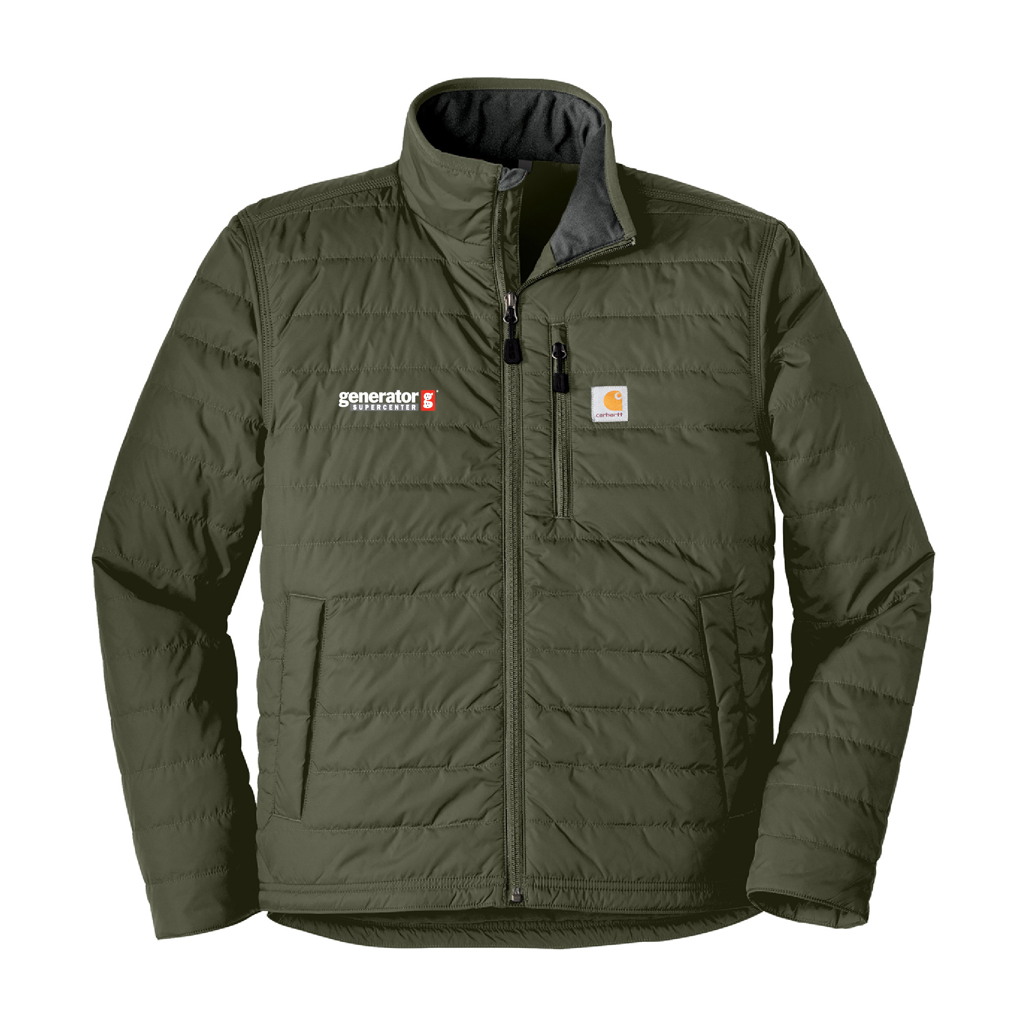 - Carhartt label sewn on chest pocket